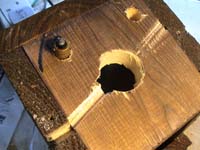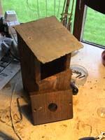 You can see results from this camera box in the blue tit video clips at CorkNest.com The great tit clips used a different box, same design but with a better camera. Here are the photos in sequence on how to build a camera into a standard nest box.